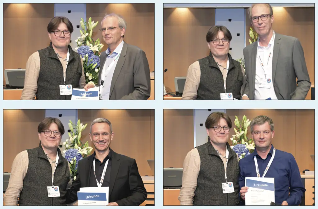 25 Jahre Mitglied in der DGPTM (ehemals DGfK) sind Olaf Sillmann, Holger Schulze Schleithoff, Mathias Opitz, Joachim Naumann, Frank-Oliver Große, Markus Fischer, Andreas Behrendt, Johannes Amberger.