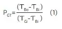 Analog zu den Leistungsangaben eines handelsüblichen Wärmetauschers soll die Wärmeübertragung an der Oxygenierungseinheit (Hohlfasermembran) anhand von Performance- beziehungsweise Leistungsfaktoren (P) in Werten zwischen 0 und 1 angegeben werden. Die Formel für den Leistungsfaktor des Gastauschers (PGT ) ergibt sich aus dem Quotienten der Temperaturdifferenz zwischen dem Blutauslass (Bo ) und Bluteinlass (Bi ) und dem Gas- (Gi ) und dem Bluteinlass (Bi ):